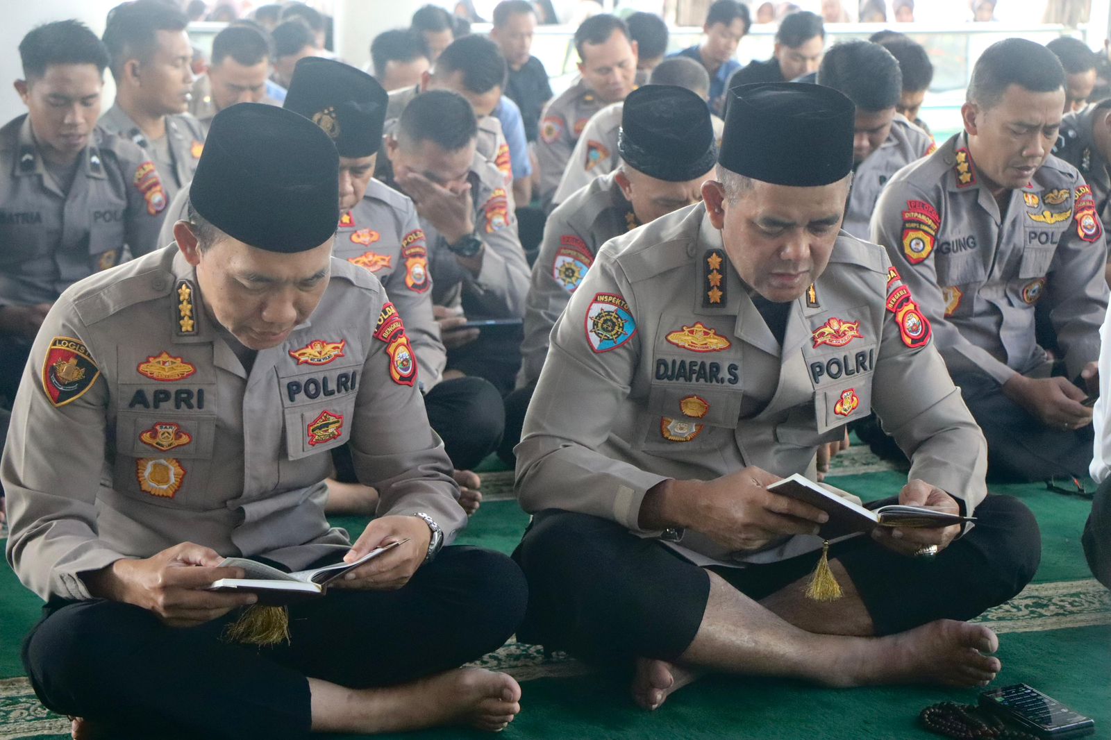 Kegiatan yang dilaksanakan mulai pukul 08.00 WIB hingga 09.00 WIB tersebut dipusatkan di Masjid Al-Amin Polda Bengkulu dan diikuti oleh Irwasda Polda Bengkulu, para Pejabat Utama Polda Bengkulu, serta seluruh personel Polda Bengkulu baik secara langsung maupun melalui sarana virtual.
