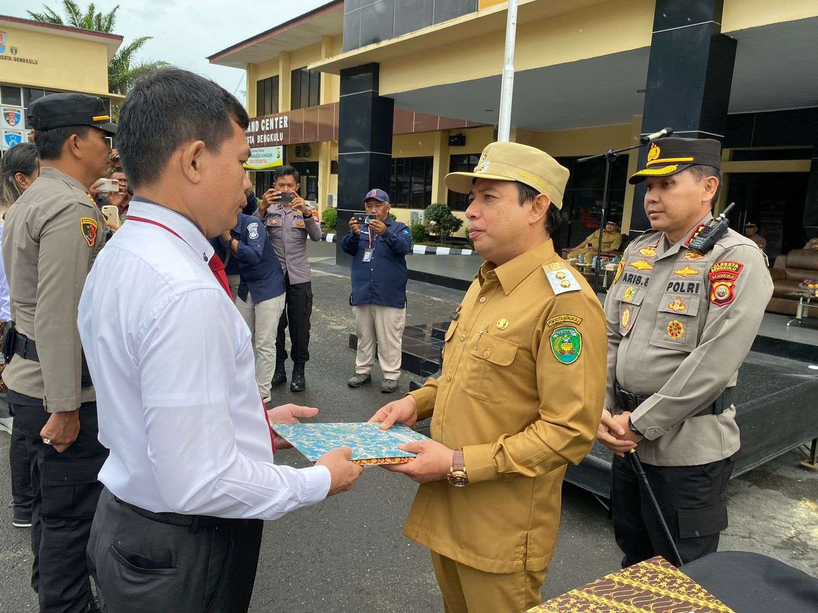 Dutawarta.com - Pemerintah Kota Bengkulu memberi apresiasi dan penghargaan kepada Kapolresta Bengkulu dan Tim Merah Putih Macan Gading serta polsek kampung melayu yang berhasil mengungkap kasus pembunuhan terhadap seorang marbot atau penjaga masjid di eks lokaliasi RT 8 Pulau Baai baru-baru ini. Pemkot juga memberikan reward kepada personil tim yang terlibat dalam penanganan perkara.