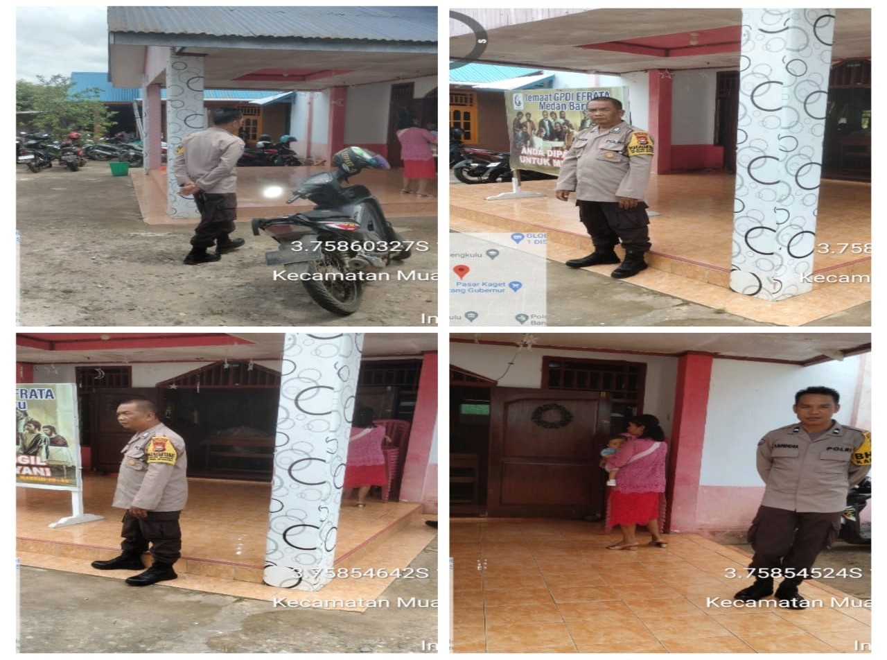Berikan Pengamanan, Polsek Muara Bangkahulu Patroli di Gereja Pante Kosta Medan Baru