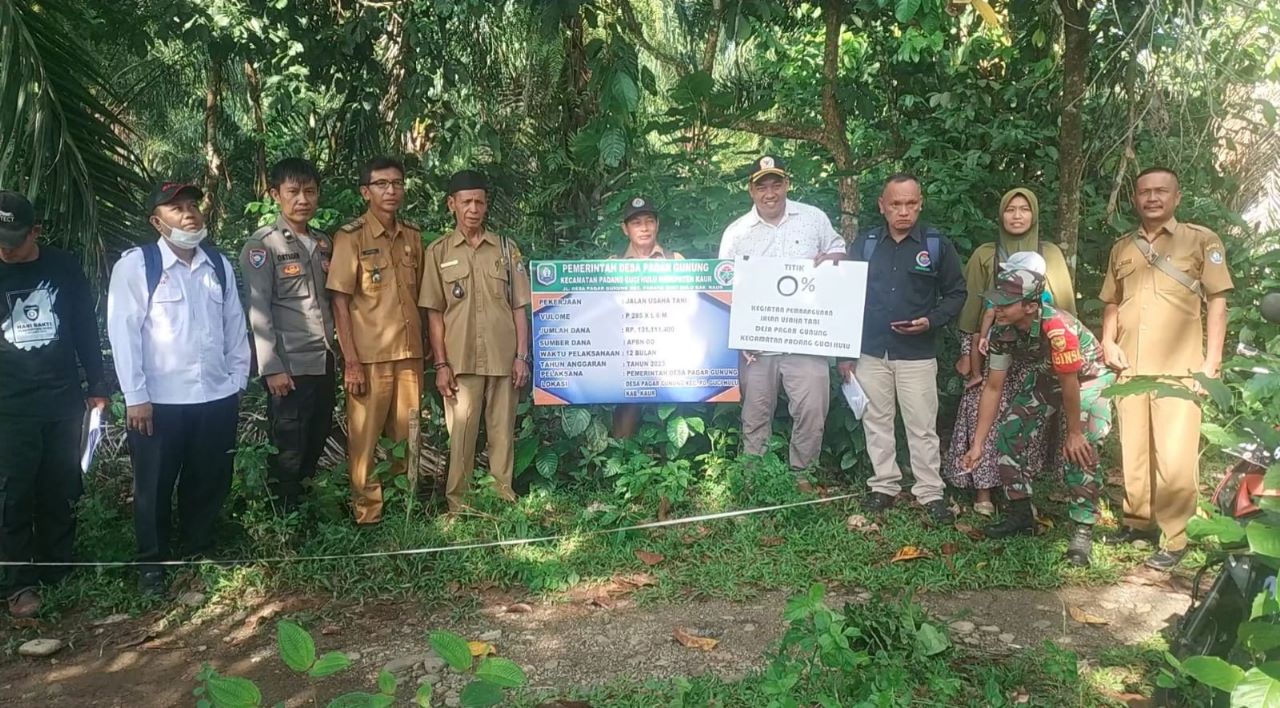 Kaur - Pada hari Senin tanggal 17 Juli 2023 sekira pukul 08.30 WIB s/d selesai Bhabinkamtibmas Aipda Oktadin Wilyanto menghadiri Giat Titik Nol Jalan Usaha Tani di Desa Pagar Gunung Kecamatan Padang Guci Hulu Kabupaten Kaur.