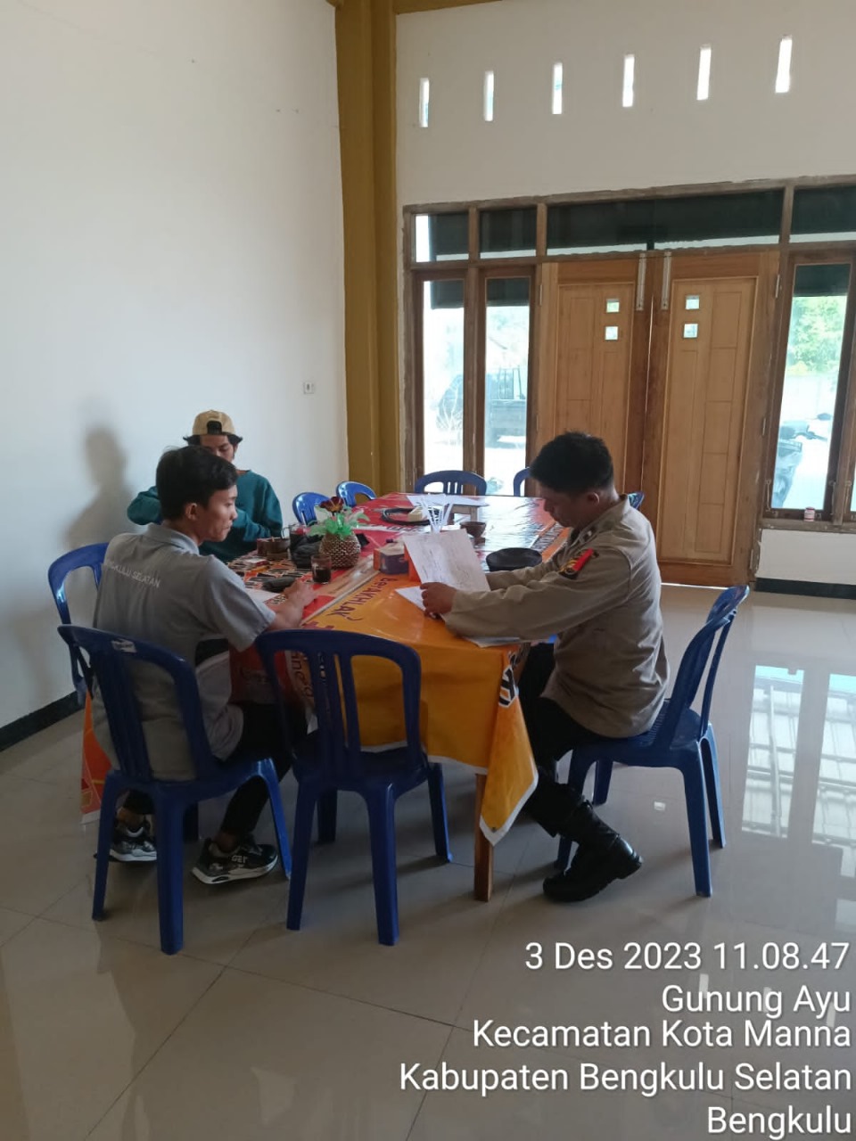 Bengkulu Selatan – Dalam rangka menjaga dan  menciptakan situasi Kamtibmas yang Kondusif guna  mendukung kelancaran dan keamanan pelaksanaan Pemilu serentak tahun 2024, dalam tahapan Kampanye,  personel Bhabinkamtibmas Polsek Kota Manna  Polres Bengkulu Selatan Polda Bengkulu melalui Satgas Preventif OMB Nala 2023-2024, Aipda Romi.F   melaksanakan Sambang ke Kantor Panitia Pemilihan Kecamatan (PPK) dan Panwascam Pasar Manna dan Kota Manna Kabupaten Bengkulu Selatan, Minggu   (03/12/23)
