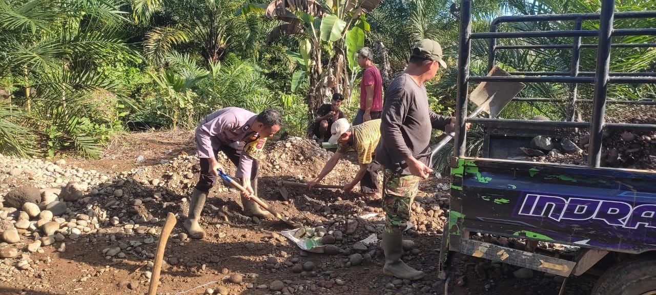 Bhabinkamtibmas Polsek Padang Jaya Sigap Gotong Royong di Desa Binaannya