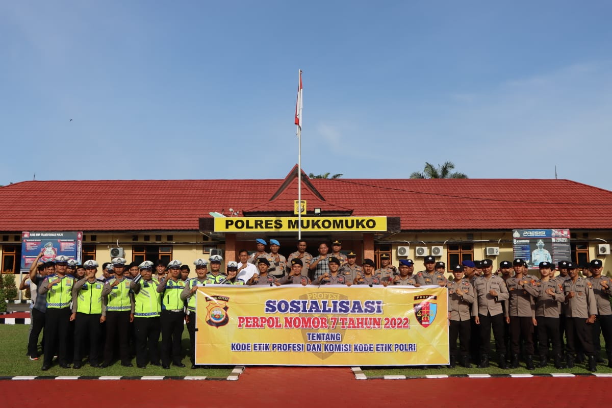 Kasubbid Wabprof Bid Propam Polda Bengkulu dalam kesempatannya menjelaskan bahwa kunjungannya ke Polres Mukomuko bertujuan untuk memberikan arahan dan sosialisasi kepada seluruh personel polres Mukomuko terkait Sosialisasi Perpol Nomor 7 tahun 2022 dan Pembinaan Etika serta Akreditasi SOP Polri di Polres Mukomuko.