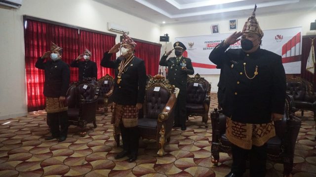 Dutawarta.com - Bupati Bengkulu Selatan Gusnan Mulyadi dan Wabup, Rifa’i Tajuddin ikuti Upacara Hari Lahir Pancasila melalui video conference dengan Presiden Joko Widodo di Balai Sekundang, Selasa (1/6/2021).