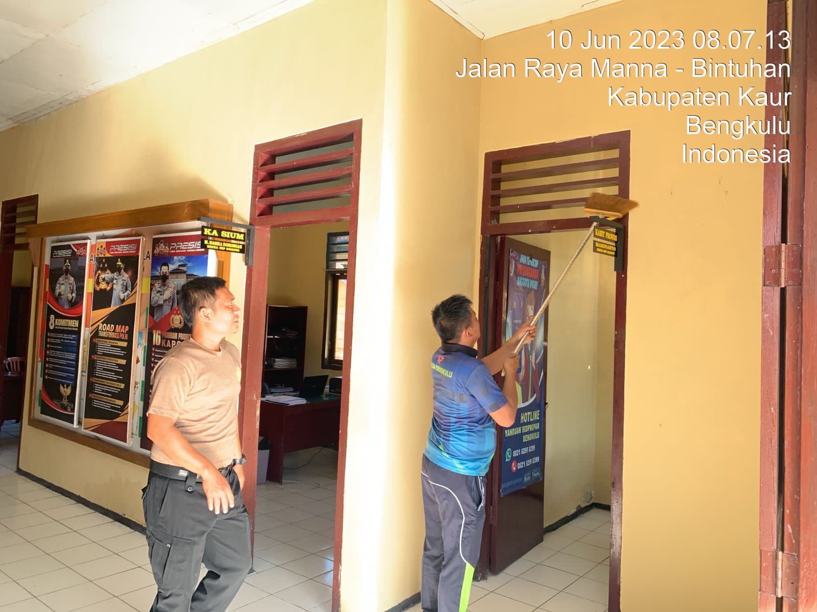 Kaur - Sabtu, (10/06/2023) Polsek Kaur Tengah Polres Kaur Polda Bengkulu melaksanakan manajemen kebesihan Mako dan lingkungan Polsek Kaur Tengah.