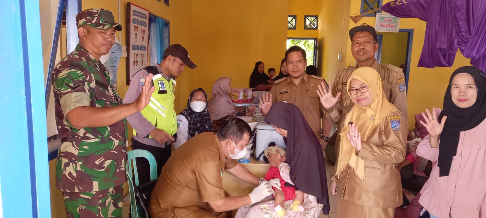 Sambil menghibur balita saat dilakukan pemeriksaan kesehatan, tidak lupa AIPDA Sukron menyampaikan pesan-pesan dan himbauan kamtibmas kepada para orang tua yang hadir.
