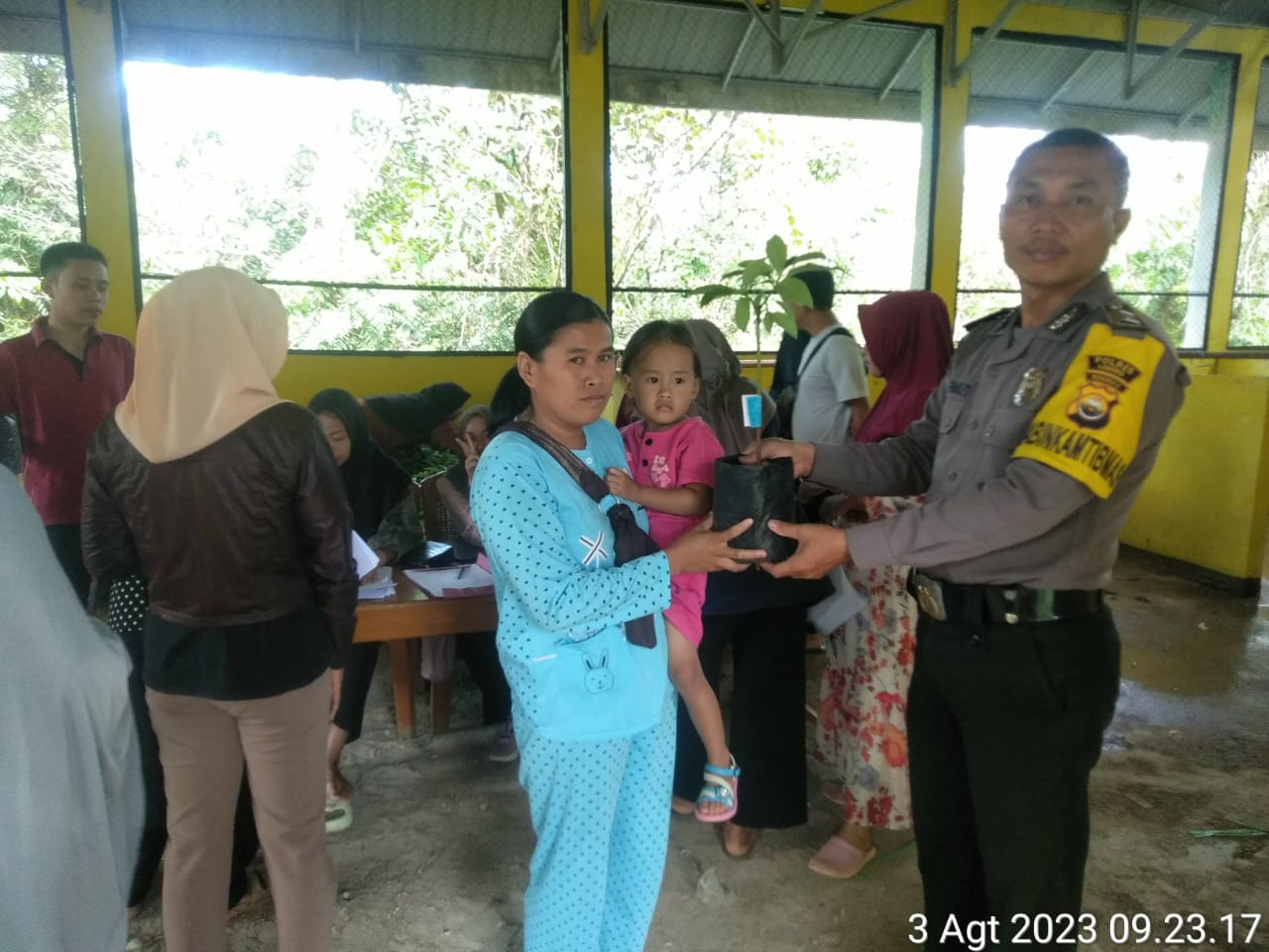 Dukung Ketahanan Pangan, Bhabinkamtibmas Hadiri Pembagian Bibit Pokat di Desa Sukau Datang I