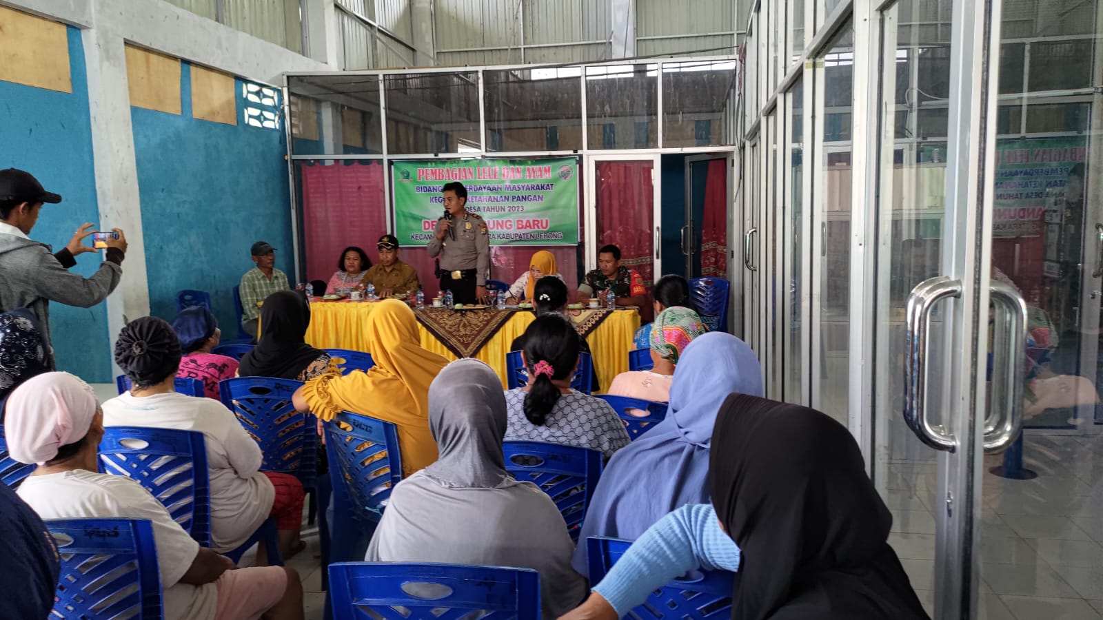 Lebong - Pada Kamis (31/8/2023), Kapolsek Lebong Utara dan Bhabinkamtibmas Polsek Lebong Utara Polres Lebong Polda Bengkulu, menghadiri kegiatan pembagian ayam dan ikan lele dalam rangka ketahanan pangan di Desa Gandung Baru Kecamatan Lebong Utara, Kabupaten Lebong.