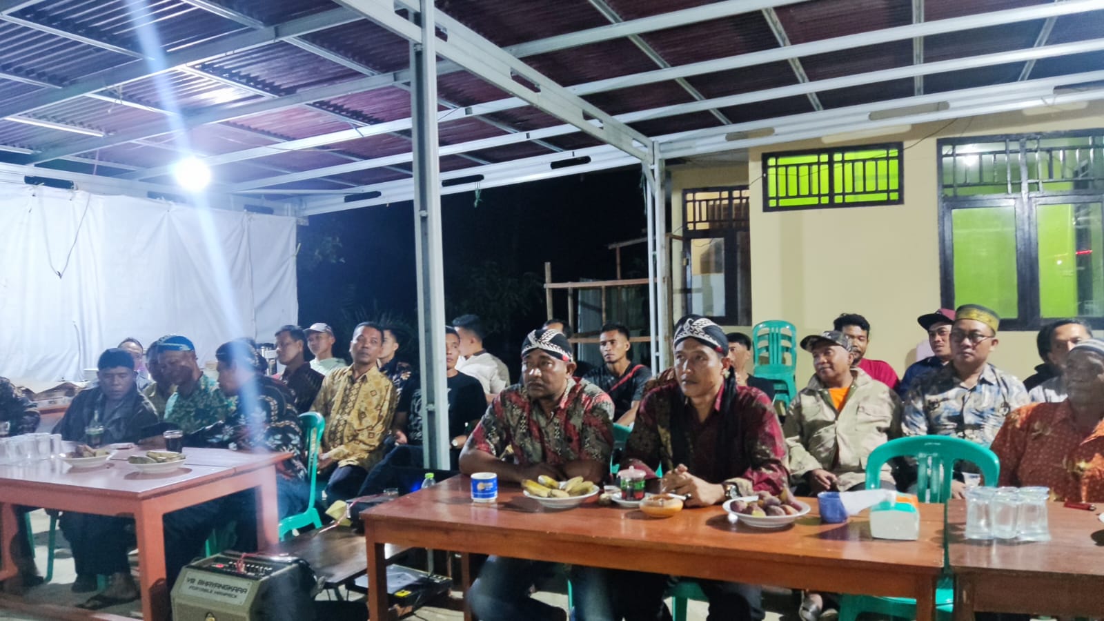 Bengkulu Utara - Kapolsek Padang Jaya Polres Bengkulu Utara Polda Bengkulu Iptu Ratno, S.H., dan personel Polsek padang Jaya bersama masyarakat mengikuti kegiatan nonton bareng (Nobar) pagelaran Wayang Kulit di Mako Polsek Padang Jaya, Jumat (7/7/2023).