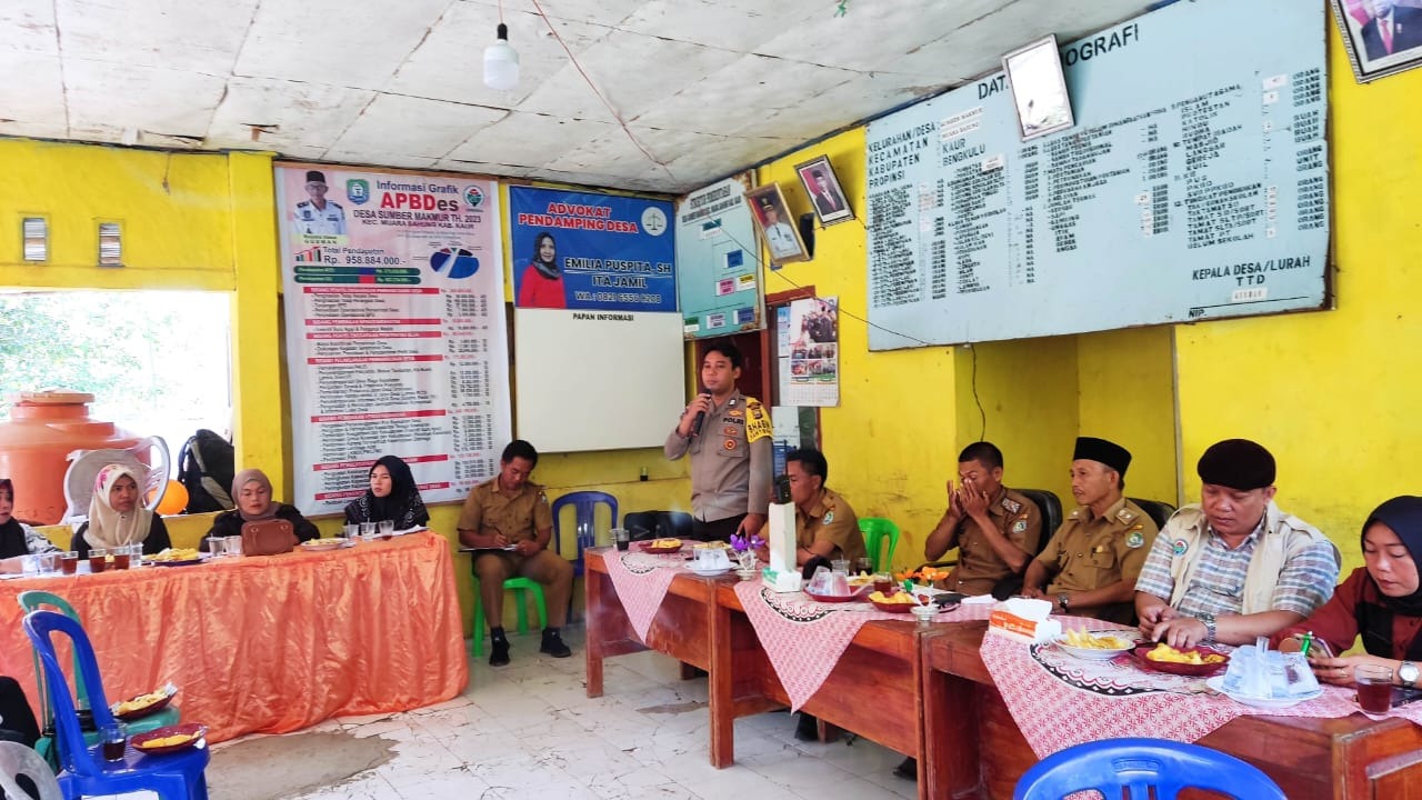 Hadiri Musyawarah Pemabangunan Desa Sumber Makmur, Bhabinkamtibmas Polsek Muara Sahung Sampaikan Imbauan Kamtibmas