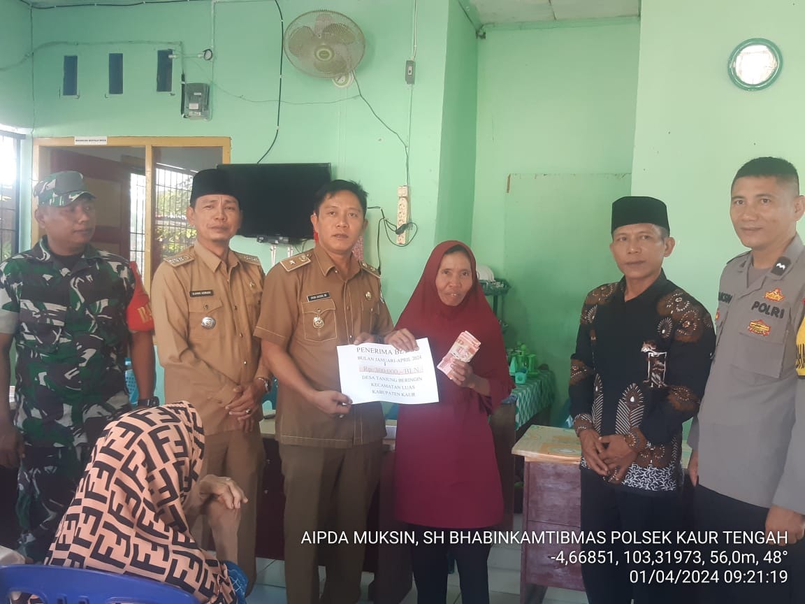 Kaur  – Dalam rangka mendukung program di desa binaannya, Bhabinkamtibmas Polsek Kaur Tengah Polres Kaur Polda Bengkulu, menghadiri penyaluran BLT DD di Desa Tanjung Beringin Kecamatan Luas Kabupaten Kaur, Senin (01/04/24).
