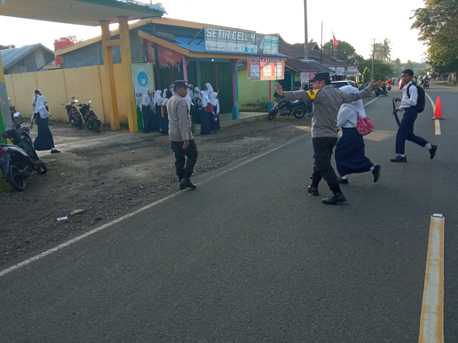 Dua orang personel kepolisian, Aipda R.Tambunan dan Bripka Evo Julisman, ditugaskan untuk melaksanakan pengaturan lalu lintas di Jalan lintas SMPN 01 Bengkulu Tengah Desa Pasar Pedati Kecamatan Pondok Kelapa. Kegiatan ini bertujuan untuk mengoptimalkan arus lalu lintas dan meminimalkan kemacetan yang sering terjadi di wilayah tersebut.