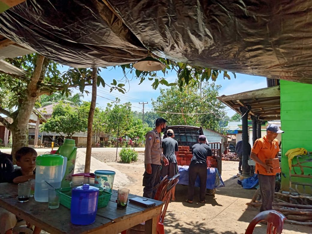 Hal itu dilakukan Pak Bhabin Polsek Batiknau Aipda Andi Ansori bersama sama dengan masyarakat membantu menurunkan batu bata, Selasa (18/07/23).