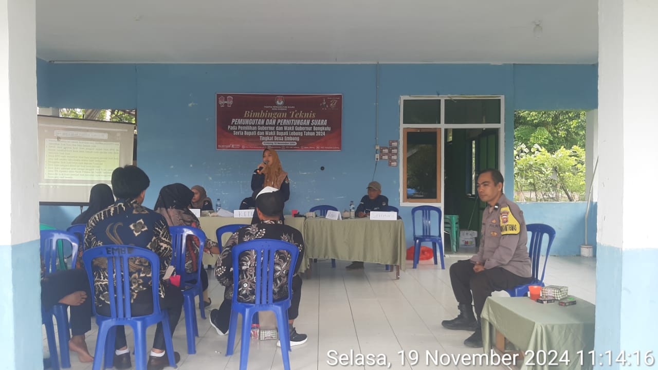 Didalam kegiatan Bimtek, PPS Desa Embong menyampaikan materi tentang tata cara pemungutan dan perhitungan suara pada pemilihan Gubernur dan Wakil Gubernur Bengkulu serta Bupati dan Wakil Bupati Lebong sesuai dengan peraturan KPU yang berlaku.