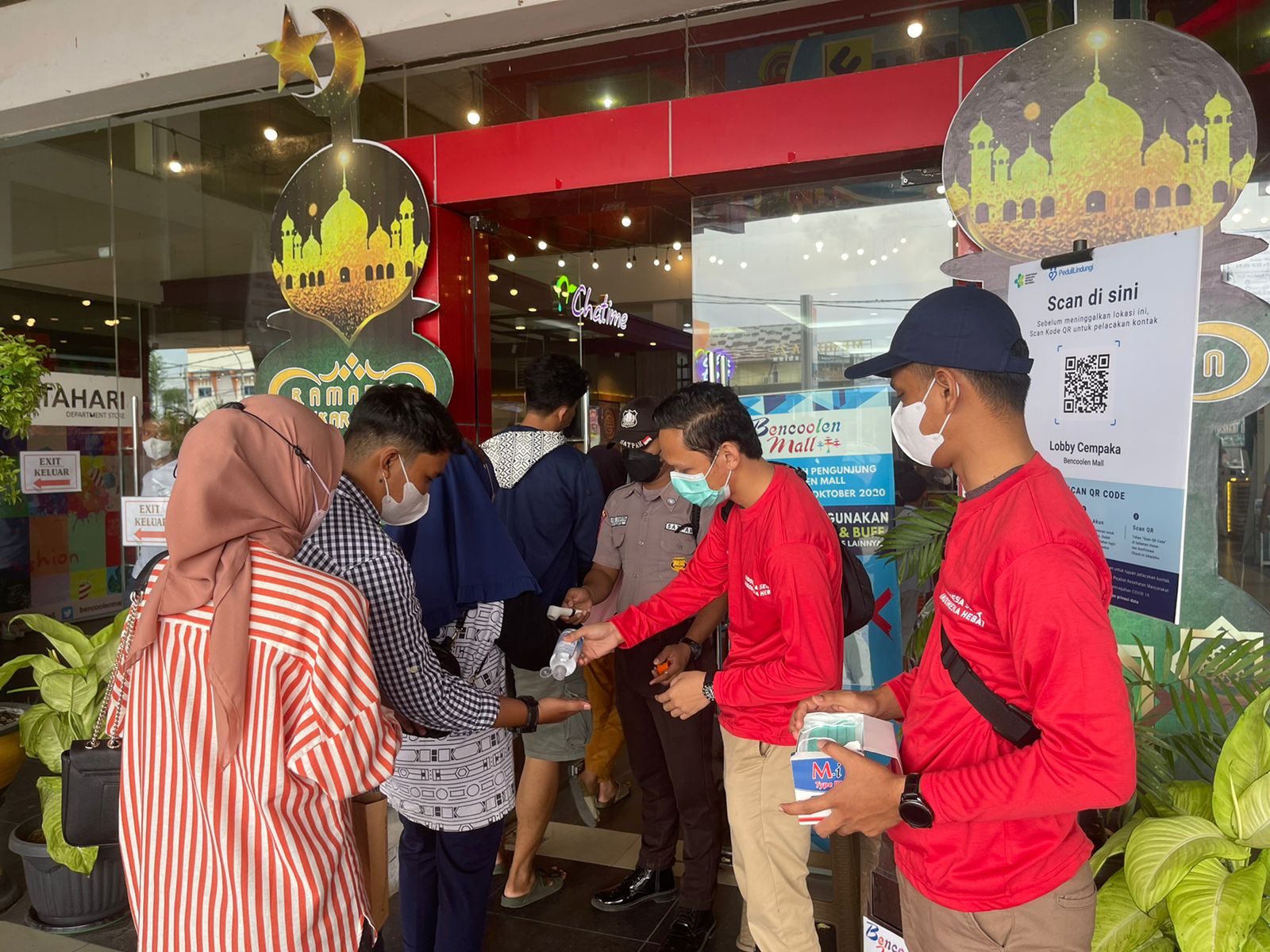 Zulkarnain (Kabinda Bengkulu), mengatakan Dalam mengantisipasi lonjakan kasus Covid-19, Binda Bengkulu bekerjasama dengan Dinkes Provinsi Bengkulu melakukan bagi-bagi masker dan hand sanitizer bagi pengunjung di Bencoolen Mall, Pantai Panjang, Taman Pantai Berkas dan Pantai Jakat.