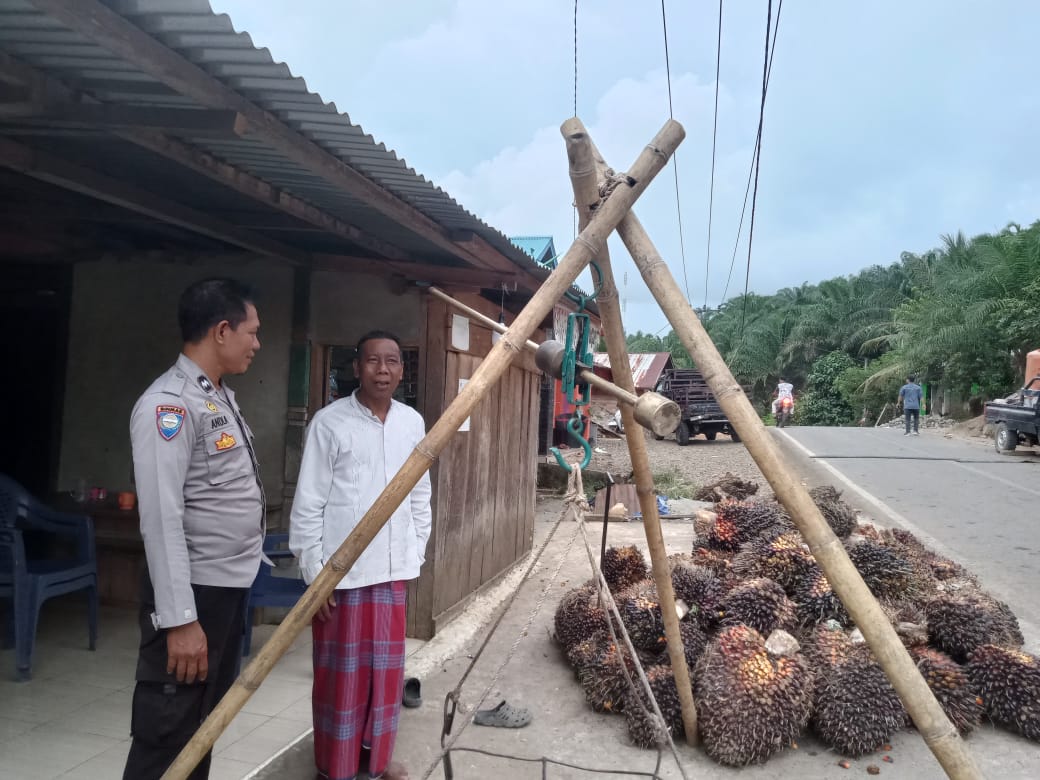 Pada kesempatan tersebut Bhabinkamtibmas menyampaikan pesan Kamtibmas kepada warga binaanya yang sedang menimbang hasil perkebunan ya agar selalu waspada karena sekarang ini TBS sedang mengalami kenaikan yang signifikan jangan sampai memicu pelaku pencurian melancarkan aksinya.
