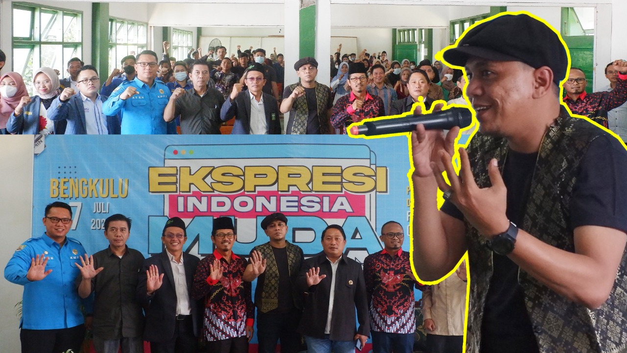Dutawarta.com - Dimas Moersas, eks vokalis group ST 12 turut memeriahkan kegiatan Pelibatan Pemuda dalam Pencegahan Radikalisme dan Terorisme dengan Pitutur Kebangsaan "Ekspresi Indonesia Muda" & Workshop Konten Kreatif di aula Sekolah Tinggi Ilmu Ekonomi Syariah Nahdlatul Ulama (STIESNU) Bengkulu, Kamis 7 Juli 2022. Kegiatan yang digelar oleh Forum Koordinasi Pencegahan Terorisme (FKPT) Bengkulu diikuti sekitar 100 dari perwakilan BEM, OKP dan pelajar.