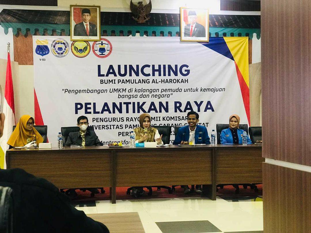 Tangerang Selatan- Pengurus Pergerakan Mahasiswa Islam Indonesia (PMII) Komisariat Universitas Pamulang (Unpam) menggelar Launching Lembaga Ekonomi PMII Unpam dan Pelantikan Rayon dengan tema “Pengembangan UMKM di Kalangan Pemuda untuk Kemajun Bangsa dan Negara”. “Kegiatan dirangkaikan dengan diskusi publik dengan menghadirkan tiga narasumber yaitu Muhammad Aras Prabowo, S.E,. M.Ak (Direktur Lembaga Profesi Ekonomi dan Keuangan PB PMII), Deni Danial (Kepala Bid. Penataan Bangunan Dinas Cipta Karya & Tata Ruang Tangerang Selatan) dan Hayati Nur dari Dinas Koperasi & UMKM Tangerang Selatan” jelas Amier Juhairi Ketua Komisarian PMII Unpam.