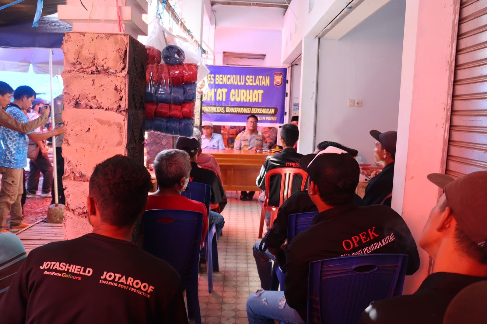 Kapolres Bengkulu Selatan AKBP Florentus Situngkir, S.I.K., yang baru menjabat didampingi Pejabat Utama (PJU) Polres BS, melaksanakan Jum’at Curhat di Pasar Kutau, Jalan Kolonel Berlian, Kota Manna dalam rangka dlmenerima langsung tanggapan dan keinginan masyarakat terhadap Kepolisian.