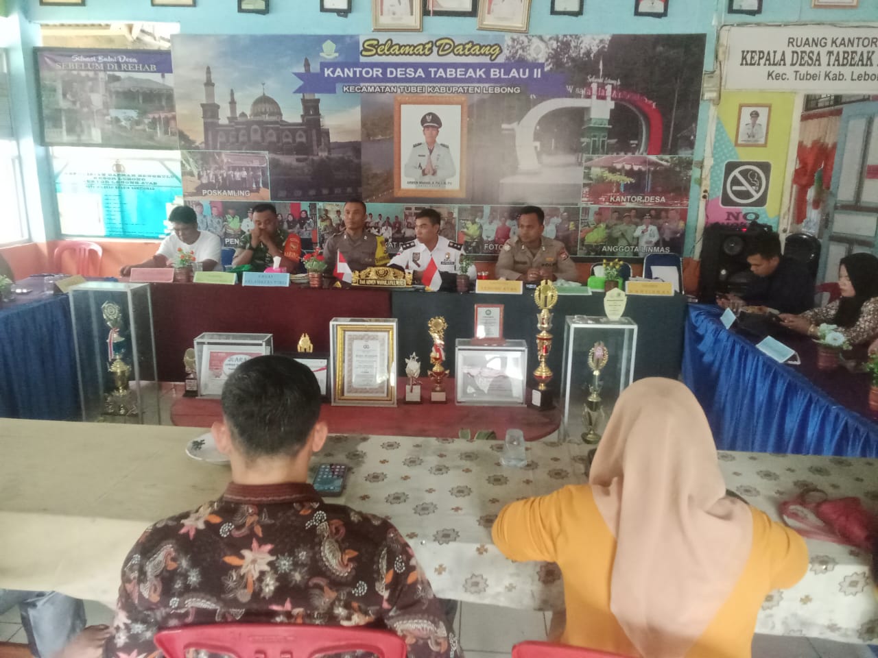 Hadir mewakili Kapolres, Kasat Binmas Polres Lebong AKP Tri Sumartono, dan personel Satbinmas. Sedangkan dari warga, hadir Kades Tabeak Blau II, perangkat desa dan warga desa setempat.
