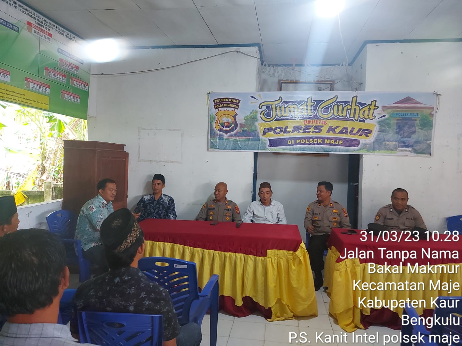 Kaur - Polres Kaur Polda Bengkulu bersama Polsek Maje, menggelar Jumat Curhat di Desa Tanjung Sakti Kecamatan Maje Kabupaten Kaur, Jumat (31/3/2023) pagi.