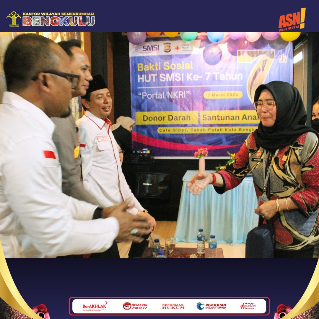 Perayaan ulang tahun ke-7 SMSI diwarnai dengan berbagai kegiatan menarik, seperti pemotongan tumpeng, bakti sosial, donor darah dan santunan anak yatim. Para tamu undangan, termasuk perwakilan dari Kantor Wilayah Kemenkumham Bengkulu, ikut meramaikan acara dengan antusiasme dan keceriaan.