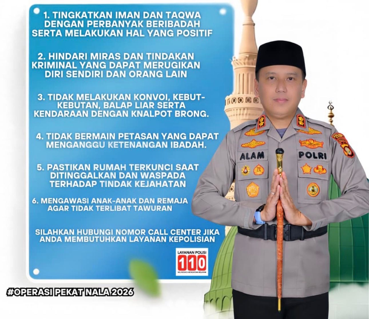 Imbauan tersebut disampaikan sebagai bagian dari upaya menciptakan suasana Ramadan yang aman, nyaman, dan kondusif, sekaligus mendukung pelaksanaan Operasi Pekat Nala 2026.