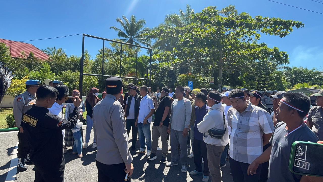 Kaur – Kapolres Kaur, AKBP Alam Bawono, S.I.K., M.Tr.Opsla, turun langsung memimpin pelayanan dan pengamanan aksi unjuk rasa (UNRAS) yang digelar oleh Gerakan Masyarakat Muara Sahung Bersatu (GMMSB), Senin (13/04/2026).