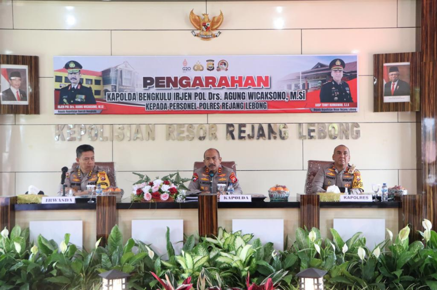 Selain meresmikan ruang Podcast Presisi “Sanika Satyawada” Polres Rejang Lebong, dalam kunjungan kerjanya dimapolres rejang lebong kapolda beserta rombongan juga memberikan arahan kepada seluruh personil Polres rejang lebong.