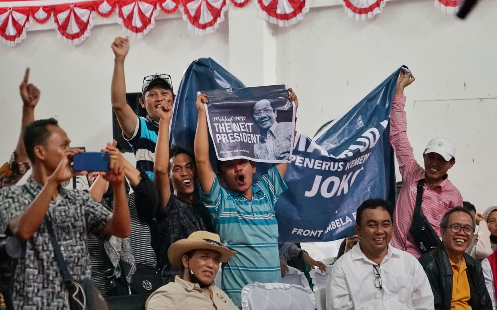 Simpatisan Menko Polhukam Mahfud MD saat menghadiri Musyawarah Rakyat (Musra) Bengkulu ke-26 di Universitas Prof. Dr. Hazairin