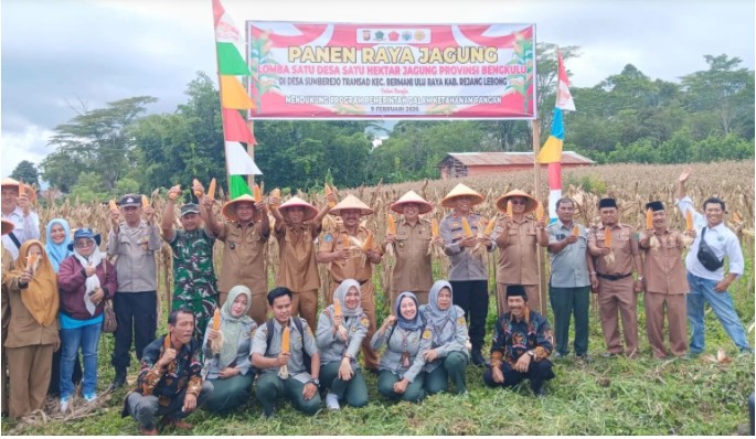 Rejang Lebong, Dutawarta.id – Pada hari Senin, 9 Februari 2026, telah dilaksanakan kegiatan Panen Raya Jagung di Desa Sumberejo Transad, Kecamatan Bermani Ulu Raya, Kabupaten Rejang Lebong. Kegiatan ini merupakan bagian dari rangkaian Lomba SADESAHE (Satu Desa Satu Hektar Jagung) yang diselenggarakan oleh Pemerintah Provinsi Bengkulu pada tahun 2025 sebagai upaya mendukung program ketahanan pangan nasional.