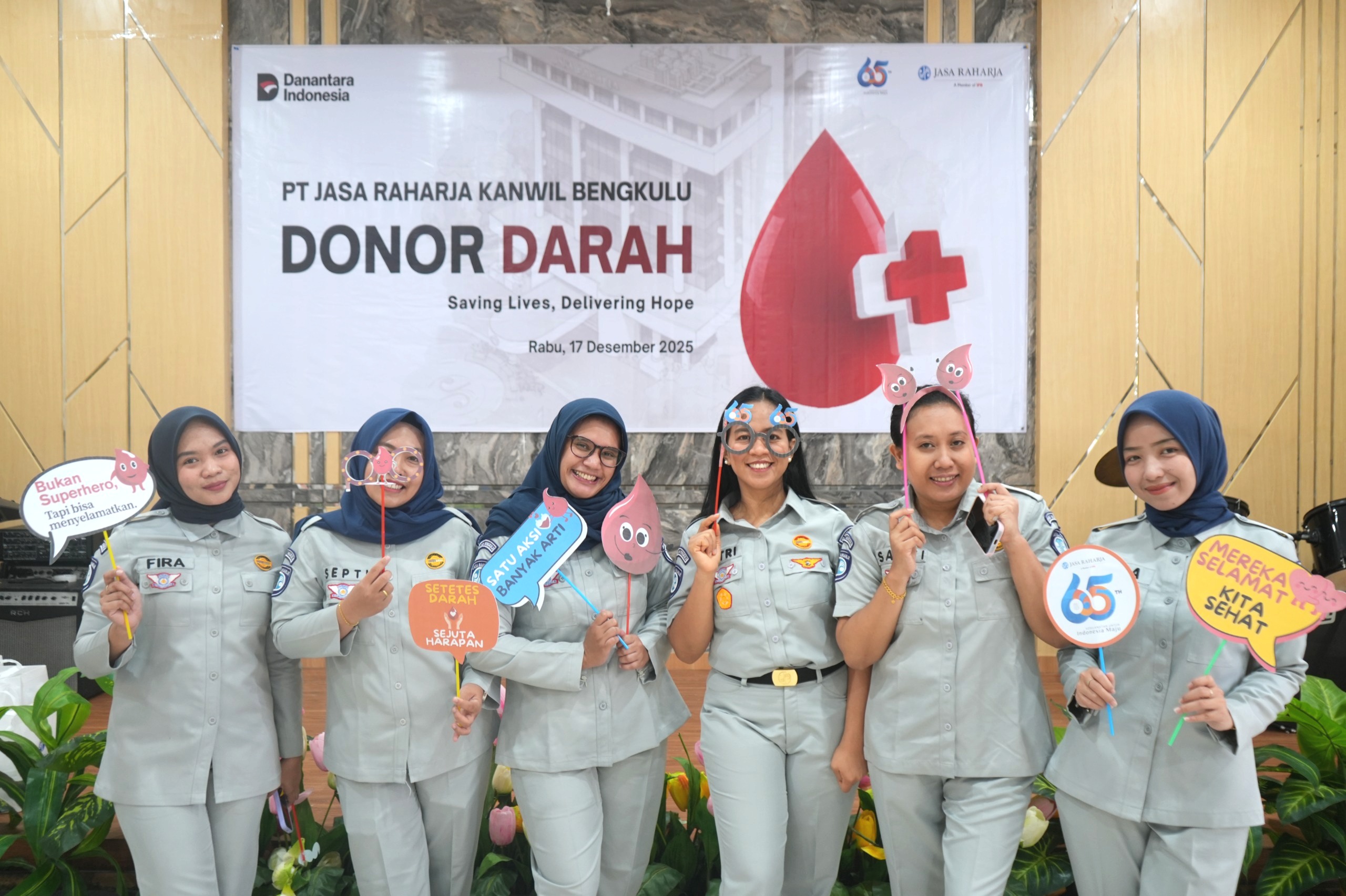 Bengkulu – Dalam rangka memperingati Hari Ulang Tahun (HUT) ke-65 Jasa Raharja, PT Jasa Raharja Kantor Wilayah Bengkulu menggelar kegiatan donor darah yang berlangsung di Gedung Serba Guna Jasa Raharja Kanwil Bengkulu, Rabu (17/12/2025). Kegiatan ini menjadi bagian dari rangkaian peringatan HUT Jasa Raharja yang mengedepankan nilai kepedulian sosial dan kemanusiaan.