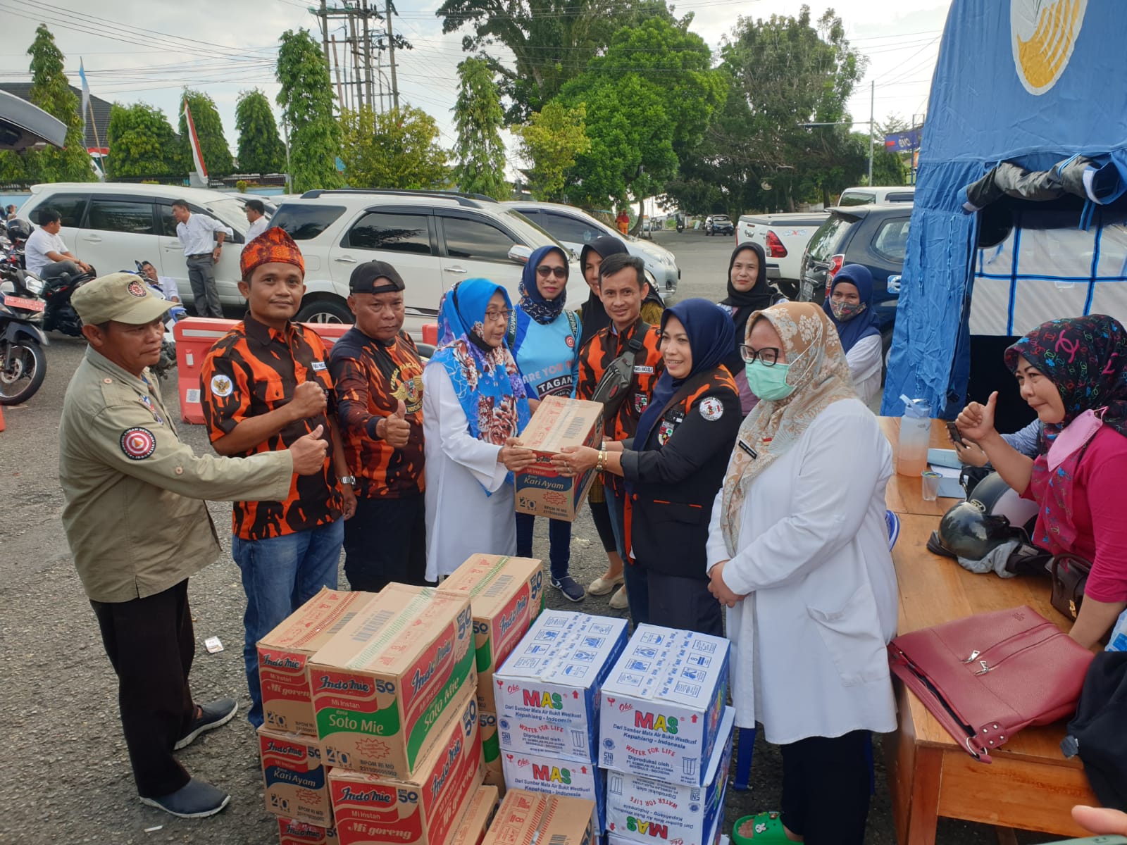 Bantuan berupa air mineral dan mie itu disalurkan melalui dapur umum yang didirikan di Simpang 4 Sukamerindu Kota Bengkulu.