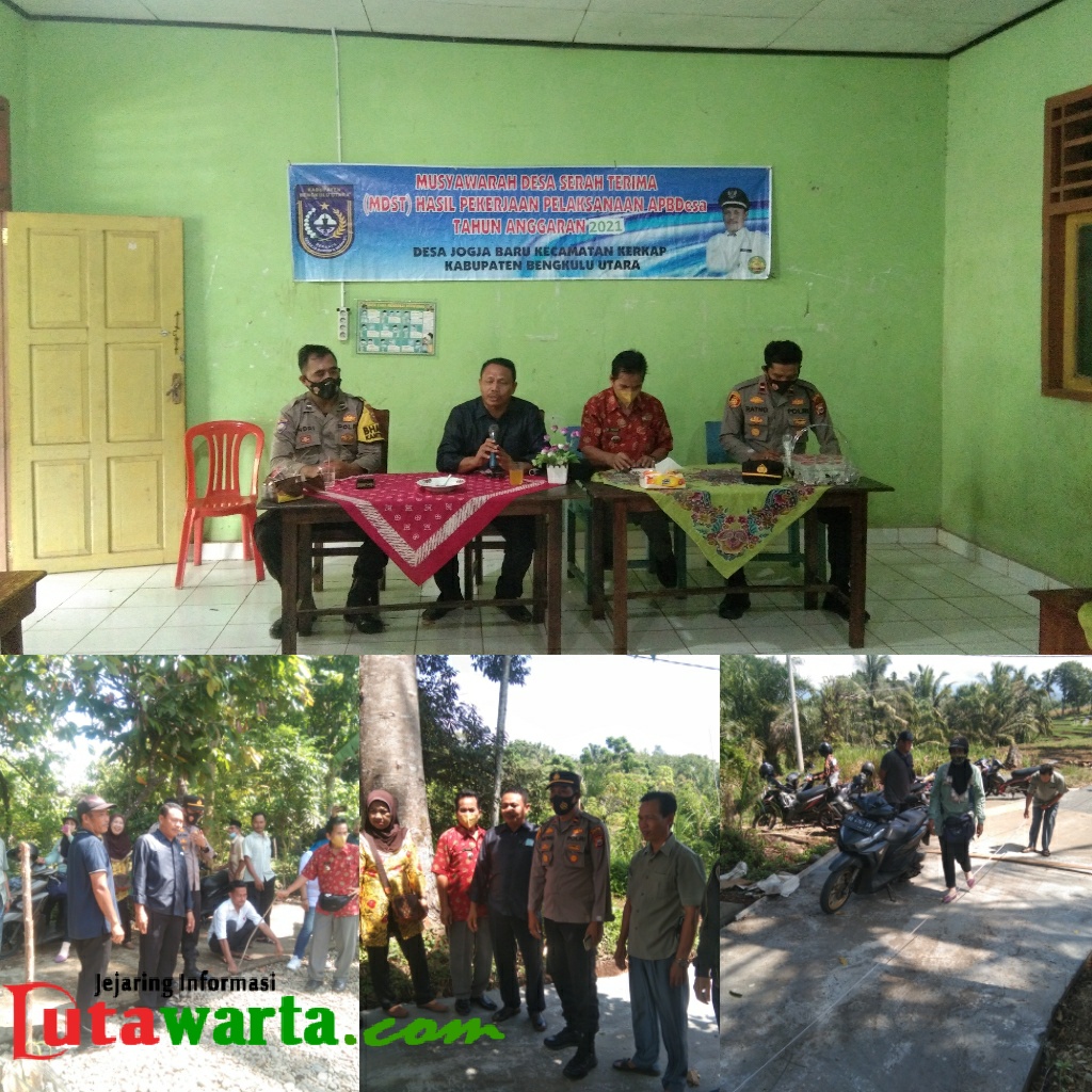 Bengkulu Utara,Dutawarta.com - Pemdes Jogja Baru Kecamatan Kerkap Kabupaten Bengkulu Utara melaksanakan Musyawarah Sarah Terima (MDST) hasil kegiatan yang bersumber dari anggaran dana APBN Dana Desa (DD) Tahun 2021.
