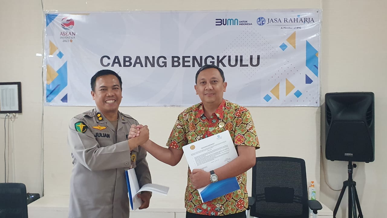 Penandatanganan Komitmen Kerjasama Antara PT Jasa Raharja Cabang Bengkulu dengan RS UMMI dan RS Bhayangkara Bengkulu