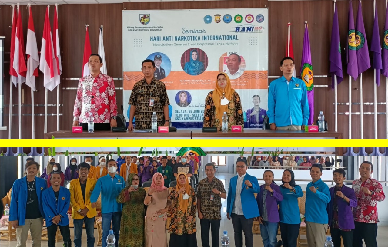 Bengkulu - Memperingati Hari Anti Narkotika Internasional (HANI) 2022 yang jatuh pada 26 Juni, Bidang Penanggulangan Narkoba DPD KNPI Provinsi Bengkulu menggelar seminar di Kampus Sekolah Tinggi Ilmu Administrasi (STIA) Bengkulu, Selasa (28/6/2022).