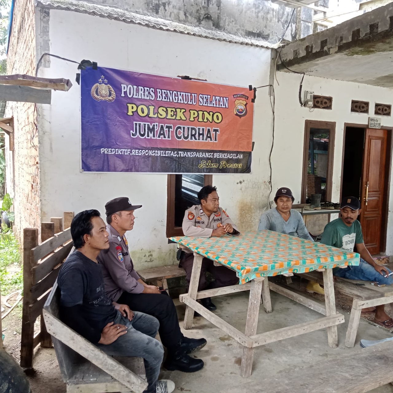 Bengkulu Selatan - Polsek Pino Polres Bengkulu Selatan Polda Bengkulu melaksanakan Jumat Curhat, di desa Gedung Agung Kecamatan Pino Kabupaten Bengkulu Selatan, Jumat (10/11/23).