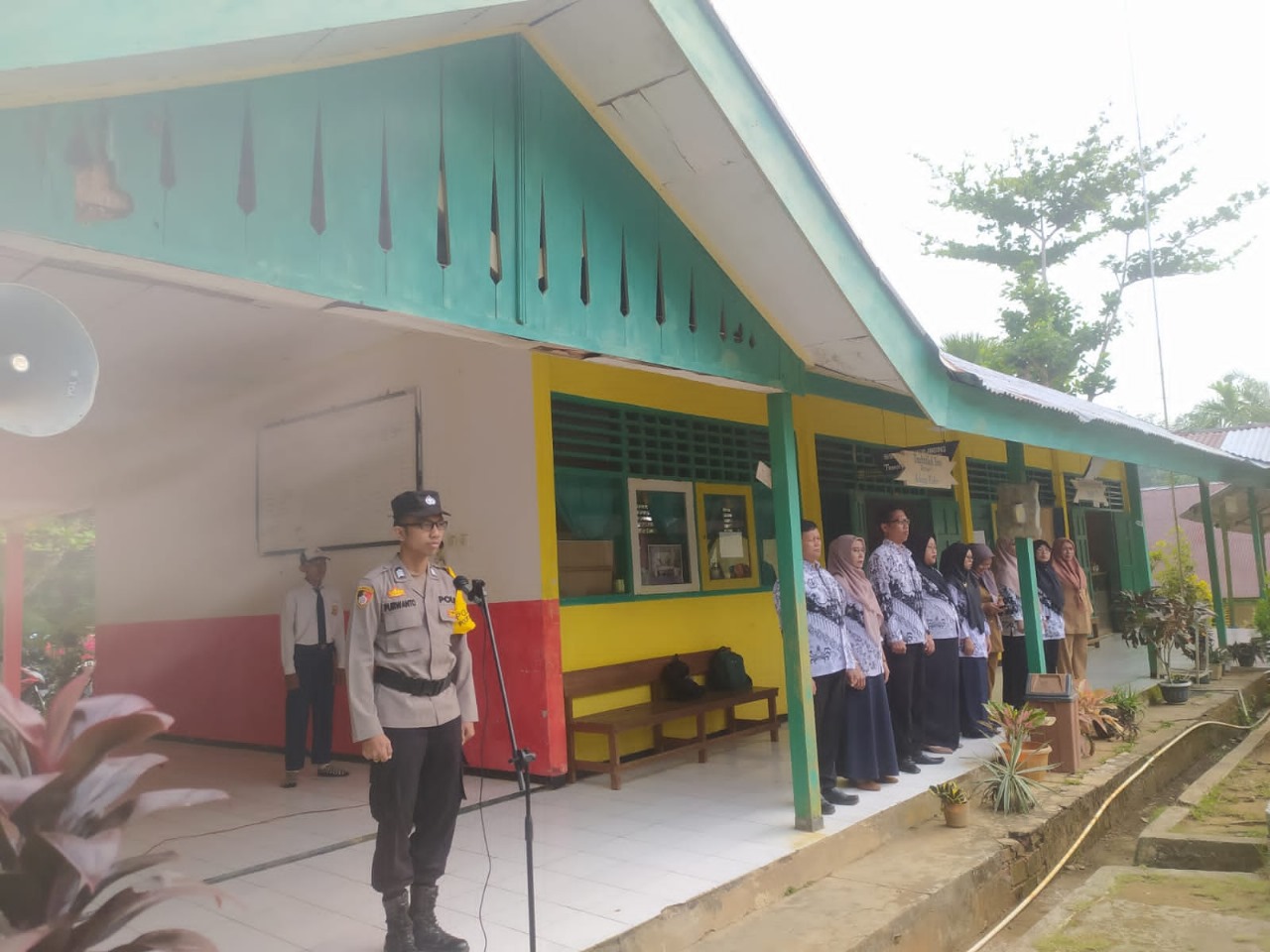 Bengkulu Utara - Dalam giat Police Goes To School di Sekolah SMPN 38 Bengkulu Utara Desa Paninjau Kecamatan Batiknau, Polisi RW Polsek Batiknau Brigpol Purwanto berkesempatan menjadi Pembina Upacara dalam Upacara Bendera rutin di Sekolah tersebut, Senin (23/10/2023).