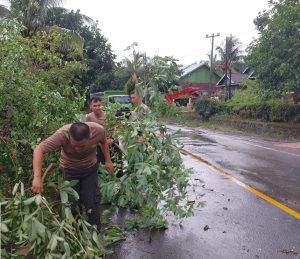 Polisi dan Warga Gotong Royong Evakuasi Pohon Tumbang di Jalan Lintas Bengkulu-Kepahiang