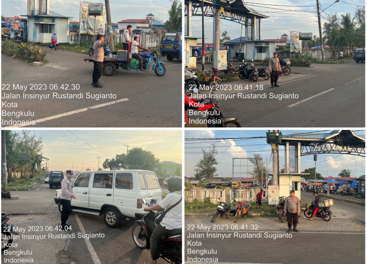 Bengkulu - Polsek KSKP Pulau Baai Polresta Bengkulu Polda Bengkulu melaksanakan Commander Wish Pengamanan Dan Pengaturan Pagi di wilayah hukum Polsek KSKP Pulau Baai, Senin (22/5/2023).
