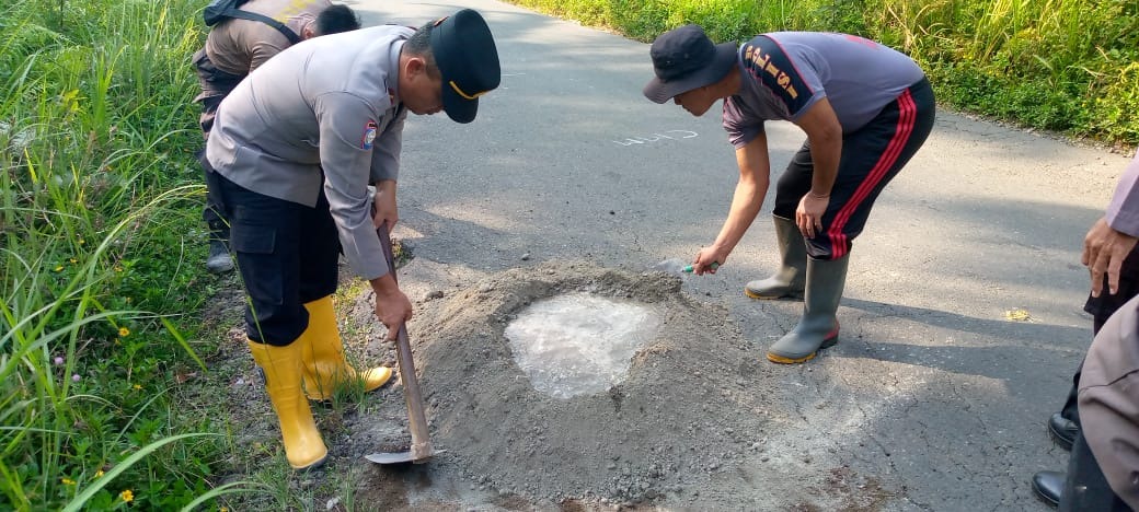"Guna meminimalisir kecelakaan akibat jalan berlubang, kami melakukan penambalan jalan di tanjakan dekat SMPN 25 Bengkulu Utara" ungkap Ipda Edy Kartiko.
