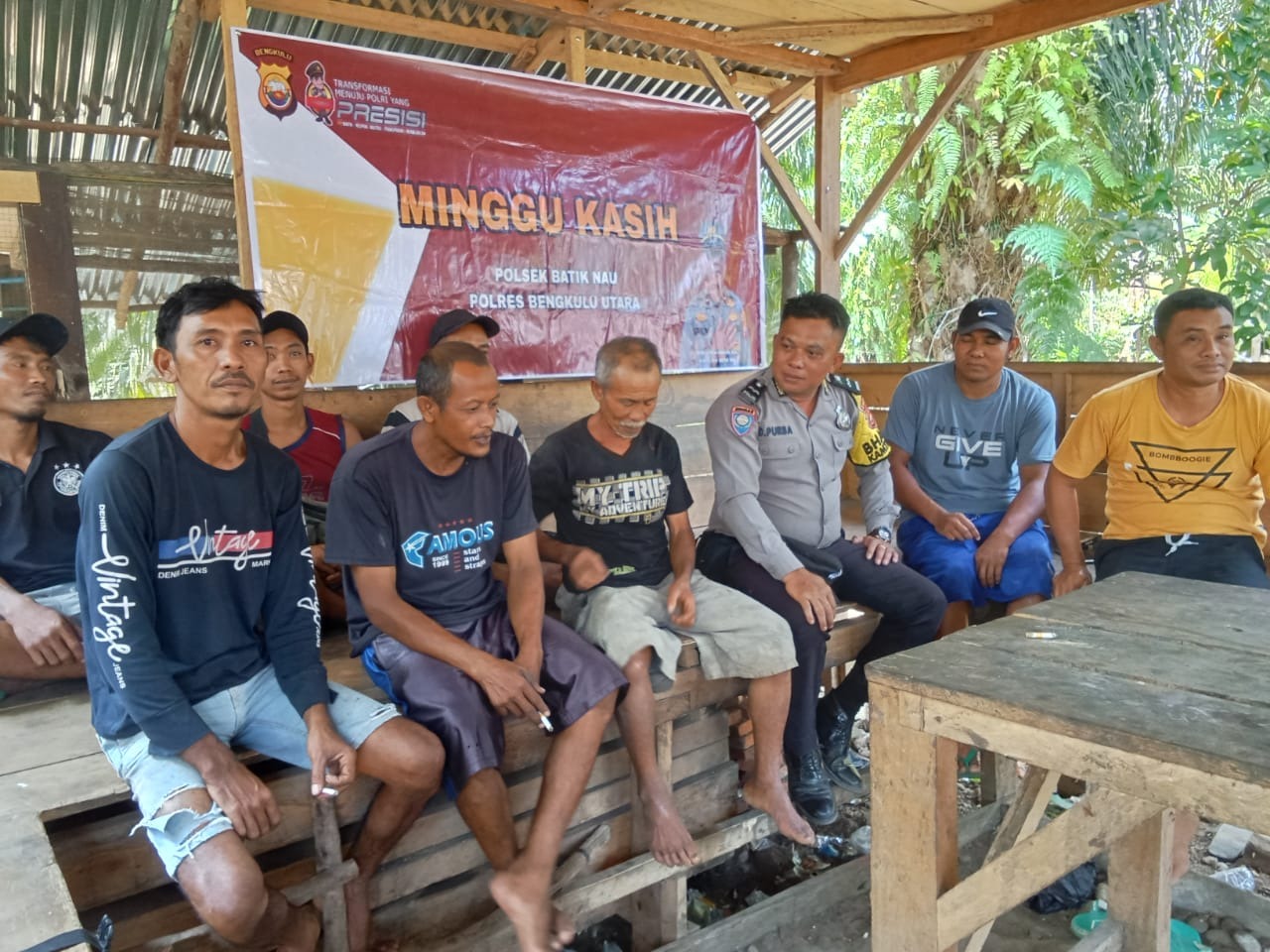 Bengkulu Utara - Bhabinkamtibmas Polsek Batiknau Polres Bengkulu Utara Polda Bengkulu, kembali melaksanakan ‘Program Minggu Kasih’ dengan menyambangi Masyarakat didesa Binaanya, Minggu (15/10/2023) siang.