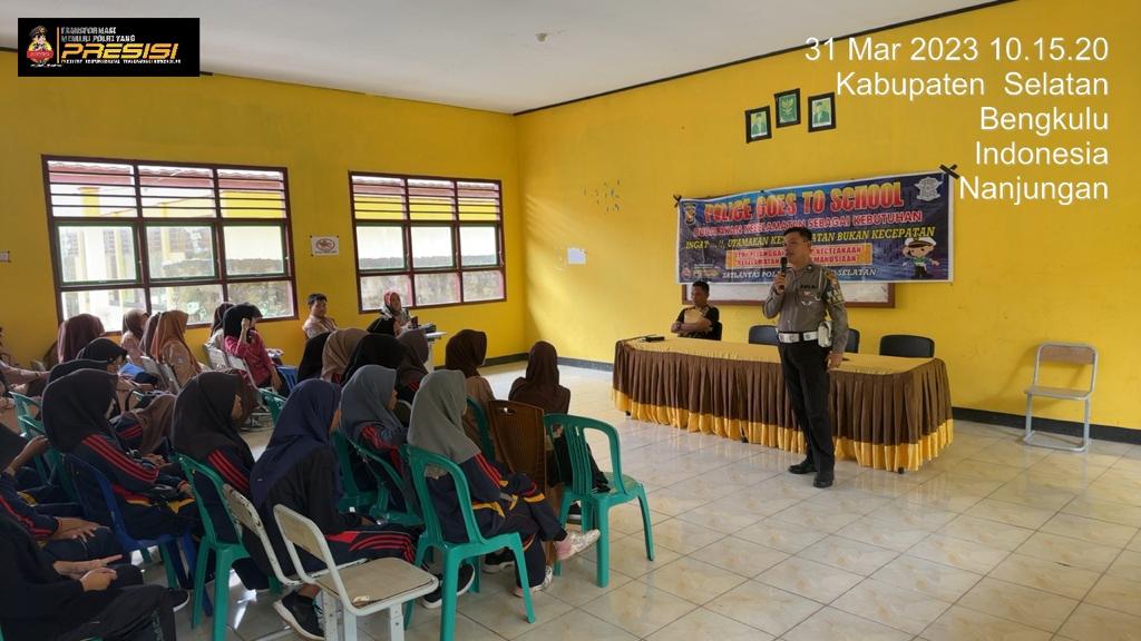 Bengkulu Selatan, - Satlantas Polres Bengkulu Selatan Polda Bengkulu melaksanakan kegiatan Police Goes Ro School di di Aula SMP Negeri 4 Bengkulu Selatan Jumat, (31/3/2023)