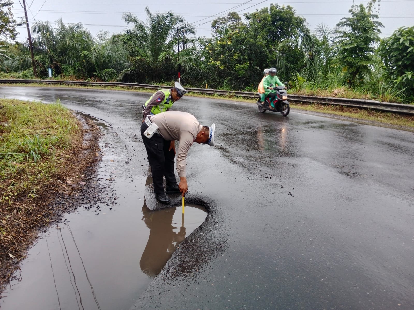 Satlantas Polres Bengkulu Tengah Lakukan Pengecekan Jalan Berlubang di Jalan Lintas Bengkulu Kepahiang
