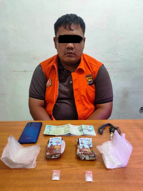 Kasubdit III Ditresnarkoba Polda Bengkulu Kompol Manogi Simare Mare mengatakan, penangkapan YK berawal dari adanya informasi masyarakat. Dan setelah dilakukan penyelidikan, anggota Ditresnarkoba Polda Bengkulu berhasil meringkus YK bersama dengan barang bukti sebanyak dua paket narkotika golongan satu jenis sabu-sabu yang disimpan YK di dalam saku celana dengan di bungkus di dalam susu kotak.