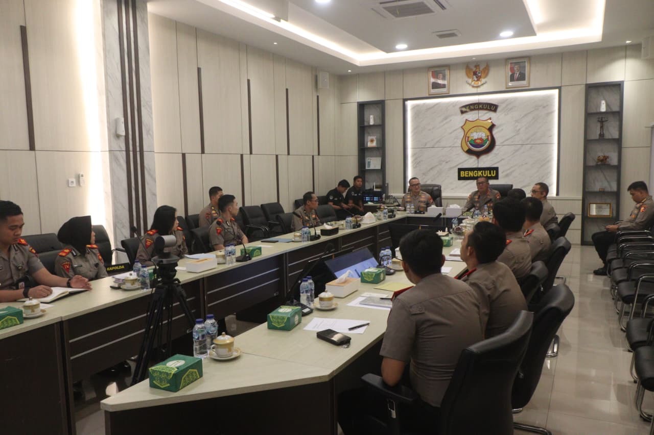 BENGKULU - Polda Bengkulu uang diwakili Karo SDM Tris Lesmana Zeviansyah, S.H., S.I.K., M.H. menerima kunjungan Tim STIK Lemdiklat Polri dalam rangka asistensi penelitian mahasiswa S-1 STIK Angkatan ke-83/WPS pada Senin, 19 Januari 2026. Kegiatan dilaksanakan di Ruang Rapat Kapolda Bengkulu dan diikuti oleh unsur pejabat serta personel terkait, termasuk Ketua STIK, serta para siswa STIK.