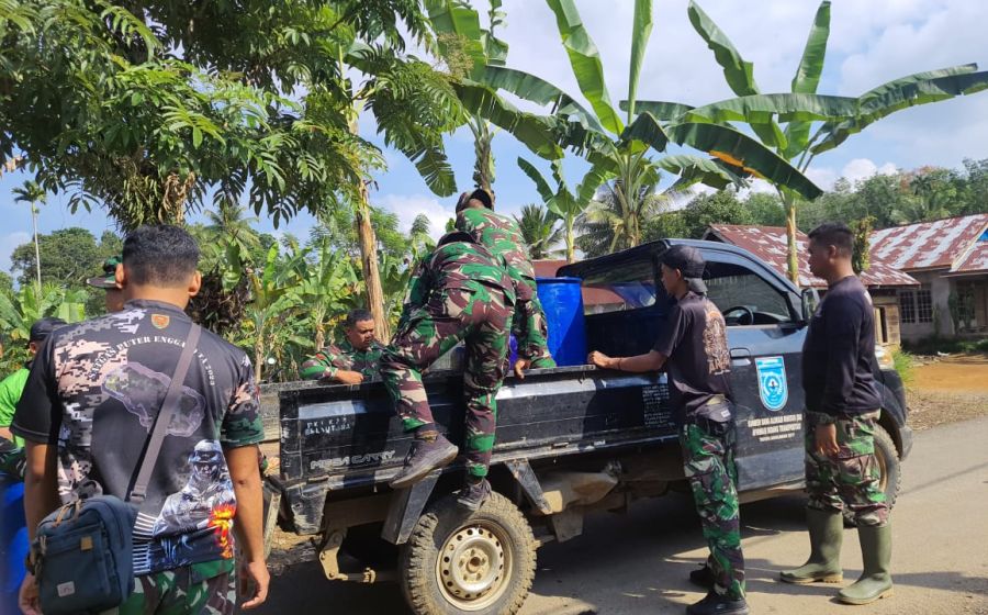 Kompak dan Gotong Royong, Satgas TMMD ke-126 Karungi Material untuk Permudah Pengangkutan ke Lokasi Rabat Beton