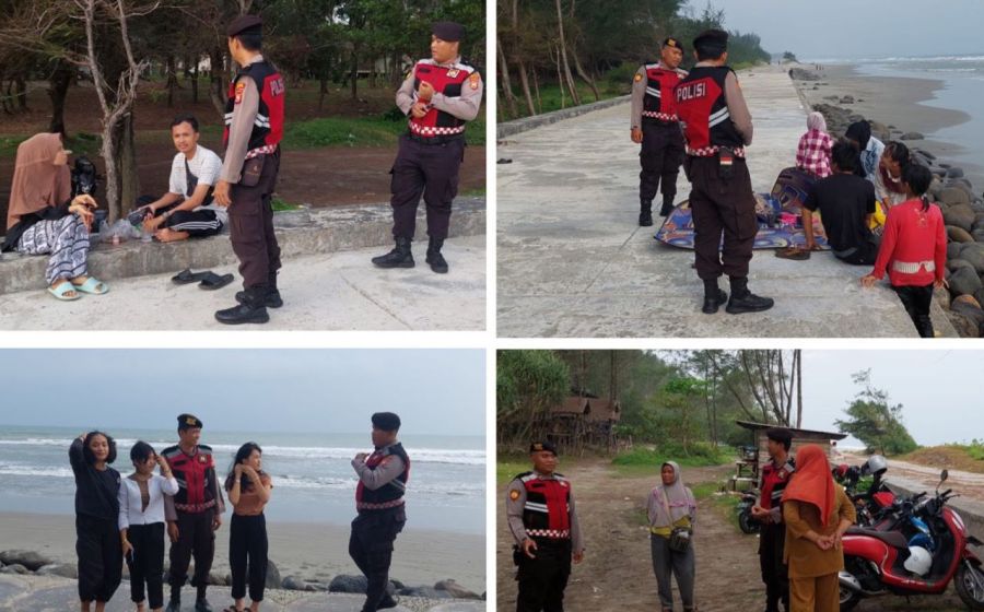 Patroli Mobiling Sore Hari, Sat Samapta Sampaikan Imbauan Kamtibmas kepada Pengunjung Pantai