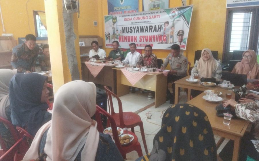 Kanit Binmas Polsek Manna Hadiri Rapat Kerja Mini Lokakarya Pengendalian Stunting dan Rumah Sehat di Desa Gunung Sakti