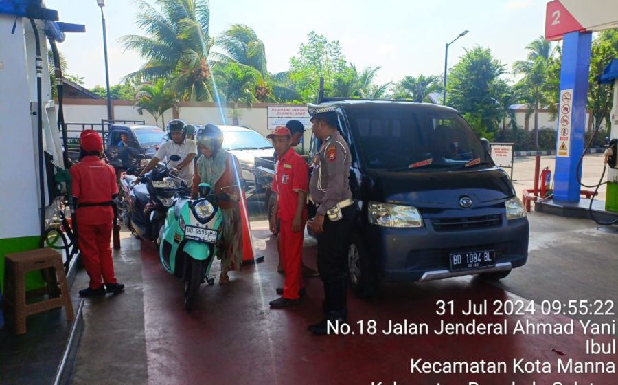 Awasi Pendistribusan BBM, Sat Lantas Polres BS Lakukan Patroli di SPBU